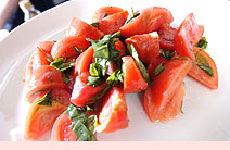 | トマトとバジルを適当な大きさに切り、オリーブオイルをまわしかける。塩・こしょうで味をととのえて出来上がり! |