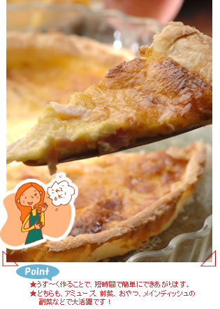 下準備したパイ型に(2)を流し込み、粉糖をふるいながらふりかける。 |