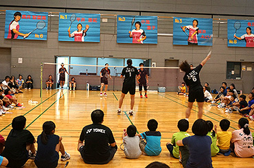 9月5日(土)に中区スポーツセンターで「広島ガスバドミントン部 バドミントンクリニック」が中区と南区の合同で開催され、約120名の皆さまに参加いただきました。各コートに選手が分かれて指導し、最後は3点先取のミニゲームをしました。初心者の方から経験者の方まで多く参加しており、私たちのアドバイスで新たな気づきや、コツを掴んだなど嬉しいお言葉を頂きました。毎回参加してくださる方も多く、参加者同士でも交流し楽しんでいらっしゃるようでした。