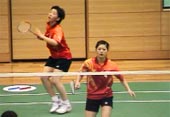 | 一方、渡辺・松本組は予選114銀行と対決。1セット目相手の攻撃をうけますが、さすがベテラン選手。ミスがほとんど無く15−11で勝ち取ります。2セット目は相手を読みきったのか15−6で試合終了。予選を通過します。2日目は本戦。世界ランキング保持者である、三洋電機&NEC九州との対戦。後半になかなか点数が取れず15−8・15−6という結果に終りましたが、出だし勢いよく攻撃し競り合いになり、自分たちの攻撃に自信がつきました。 |