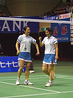 | 第2ダブルス日野・小池組は昨日の借りを返すかのように、乗りに乗ったショットを繰り広げ、広島ガスに勝利を与える。 | ![]() |