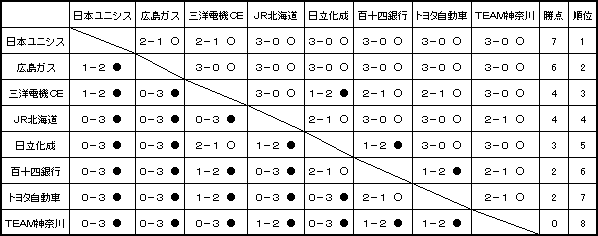11月21日(土)〜23日(月)香川県坂出市立体育館において、日本リーグ2部大会が開催されました。2日目の第1試合目での日本ユニシス戦、1−2で敗れ痛い黒星。その他6戦は3−0で勝利し、6勝1敗の第2位で大会を終了。個人賞に、今大会全勝で終えた日野・小池ペアが敢闘選手賞を受賞しました。 1年で1部復帰とはなりませんでしたが、来年こそは1部復帰できるよう、チーム一丸となって頑張りますので、引き続き温かいご声援をよろしくお願いいたします。 |