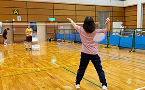 17名の方が参加され、初めに基本的なラケットの握り方や振り方を説明した後に、ノックを中心にシャトルを打つ練習を行いました。積極的に質問してくださる方が多く、どんどん上達していく姿を見ることができて、私たちもとても有意義な時間を過ごすことができました。