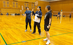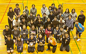 当社バドミントン部から、日野マネジャー、近藤選手の計2名が参加し、41名の方を対象にバドミントンの技術が向上するコツなどをお伝えしました。