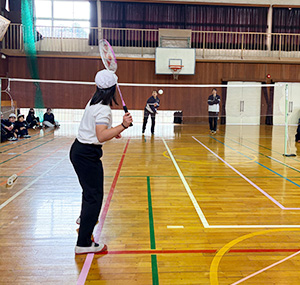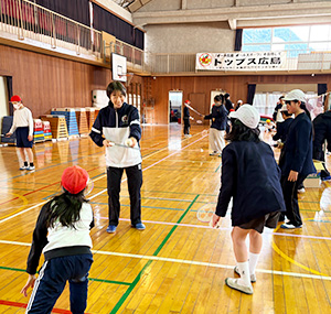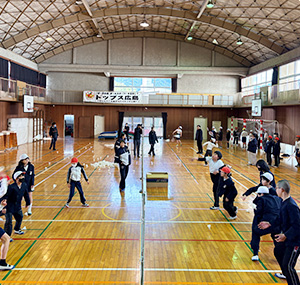 1月26日(月)に広島市安佐北区の飯室小学校(5・6年生41名)で講習会を行いました。 講習会の始めに選手によるデモンストレーションを行った後、実際にシャトルを打つ練習を行いました。選手と一緒に楽しくシャトルを打ち合う児童の皆さんの姿がたくさん見られ、バドミントンに興味を持っていただいたようで私たちも大変嬉しく感じました。 今後も、講習会を通して、地域のスポーツ振興およびバドミントン競技の普及を図ってまいります。
