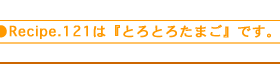 ●Recipe.121は『とろとろたまご』です。 ●Recipe.121は『とろとろたまご』です。 バックナンバーバックナンバー