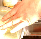 木綿豆腐半丁、ブロッコリー、タマネギをフードプロセッサーにかける。濃度を見ながらミルクを加え、混ぜる。