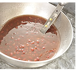 【仕上げ】 ●小豆の甘煮 小豆の甘煮(缶詰でも可)、わらびもち、ココナッツアイスを盛り付ければできあがり!