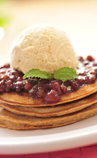 3)(2)に、ゆで小豆とアイスクリームをトッピングして、召し上がれ!