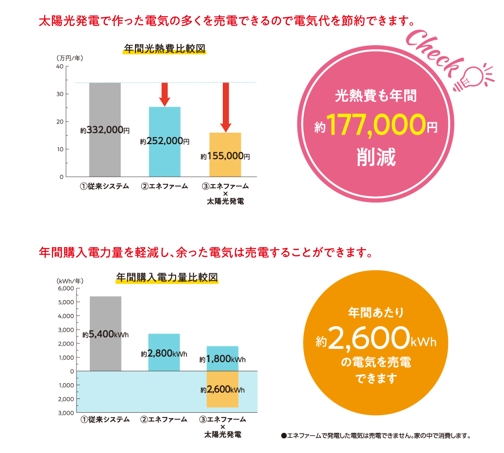 ※ガス・電気料金についてはそれぞれの金額を千円単位切り上げ、売電価格については千円単位切り捨てて計算しております。