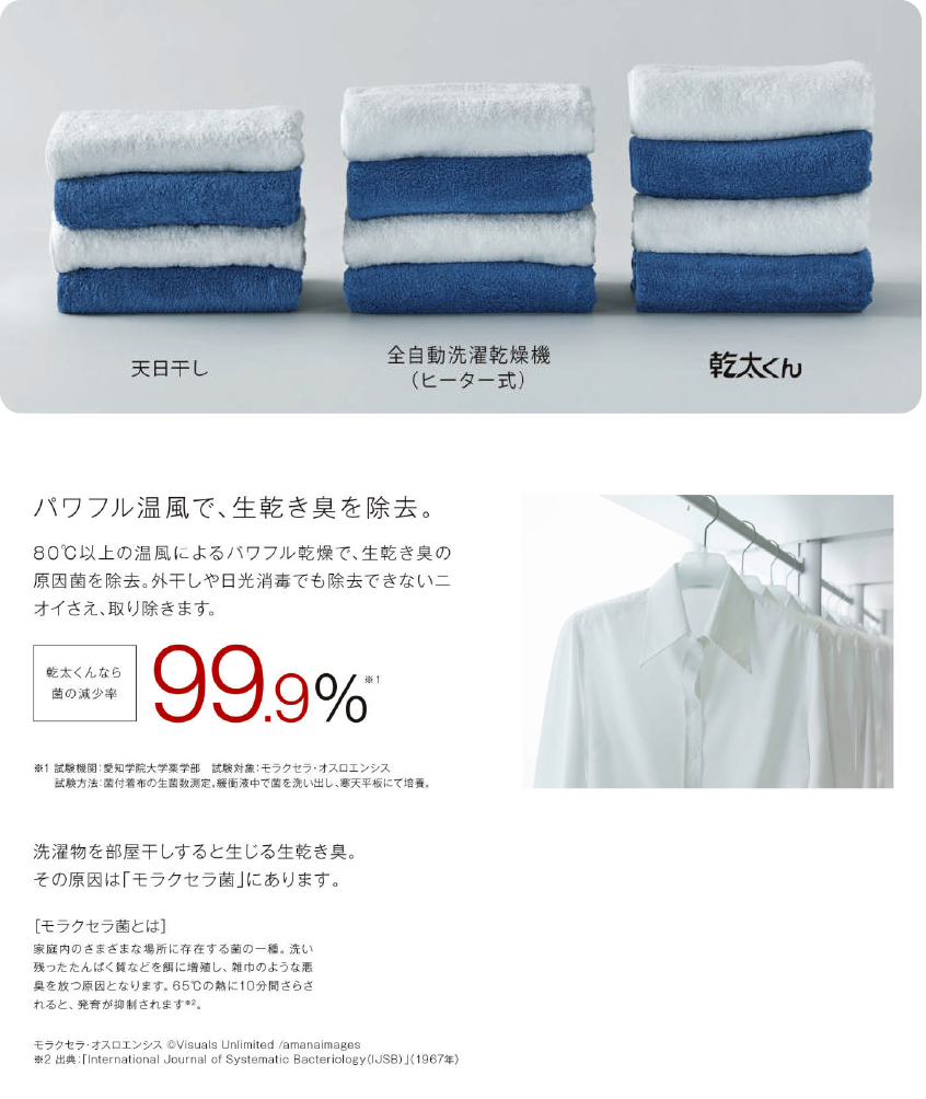 花粉の多い時期・寒い冬・梅雨時期など天気に左右されることなく安心して洗濯乾燥できます。ガスならではのパワーで80℃の温風で乾燥させるので、繊維が根元から立ち上がり、天日干しよりも、ふんわり仕上がります。