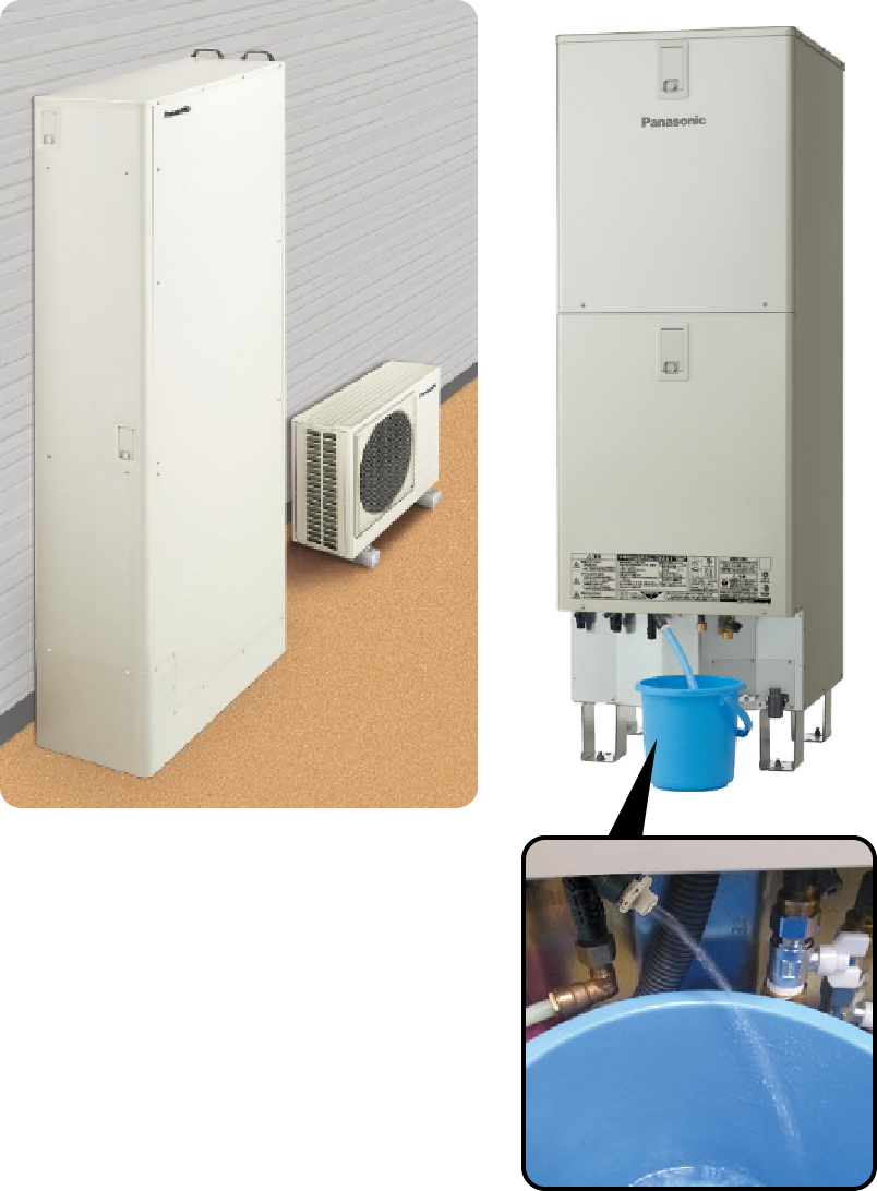 空気の熱を利用するヒートポンプ技術で、従来の電気温水器よりも効率的。太陽光発電との組み合わせで、さらに電気代を節約できます。停電時でも貯湯タンクに蓄えられたお湯を生活用水として活用可能。