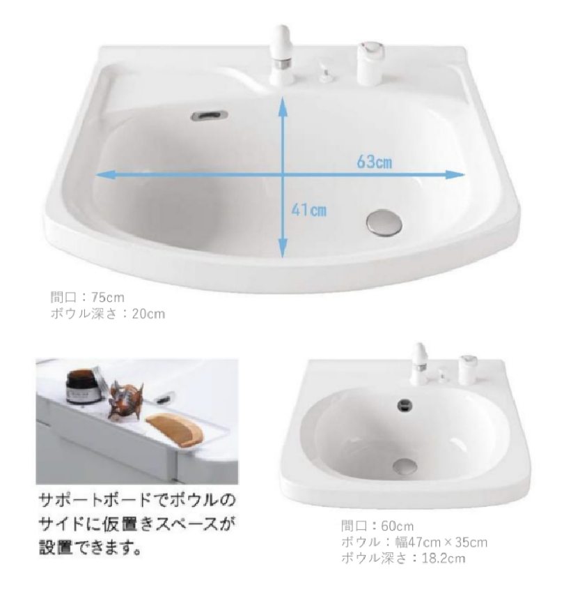 洗面にしたい深めで広いボウルを採用することで、水はねを防ぎ、洗顔やつけ置き洗いも快適に使えます。さらに、水・汚れ・湿気に強い素材を採用することで、水が飛んでもサッと拭くだけで掃除が簡単に。