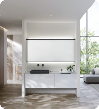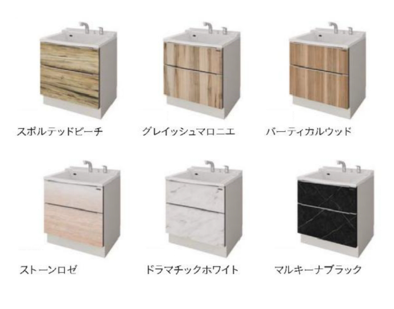 洗面所にしたいナチュラル、モダン、ホテルライクなどお好みの雰囲気に合わせてカラーや素材の組み合せも自由に選べます。扉や壁の色をホワイト系のキャビネットで統一することで、空間全体が明るく、清潔感のある印象に仕上がります。
