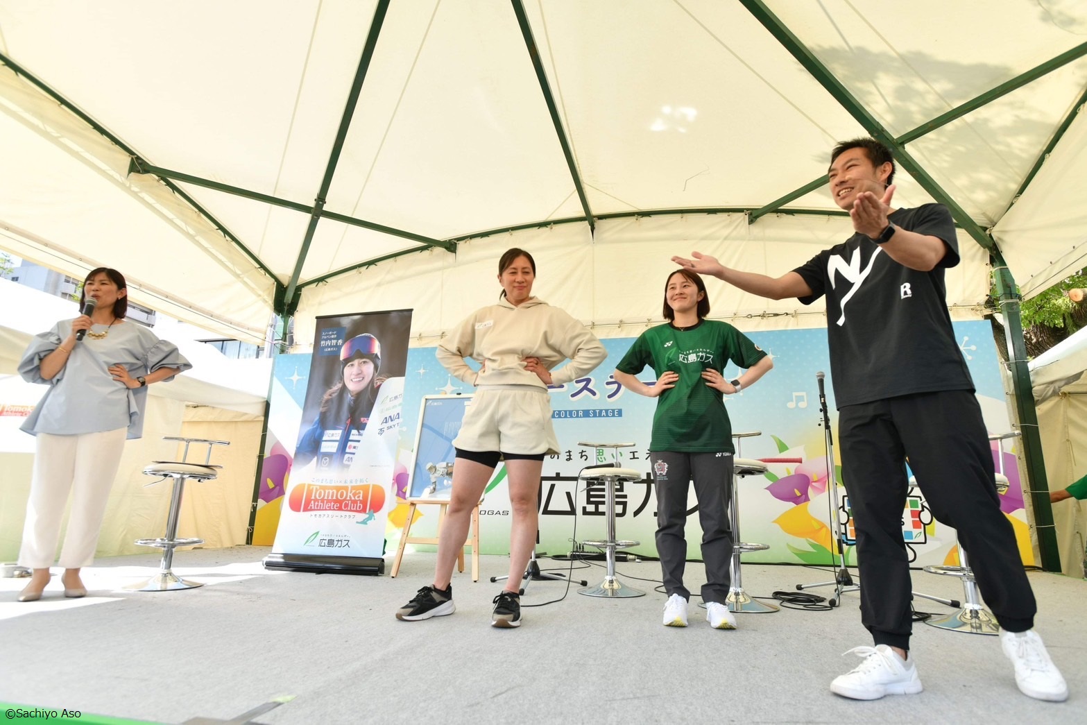 当社は例年通り、三川町ブロックに「このまち思い GASLAND」ブースを出展し、カラーステージでは、「スキー部 竹内選手・バドミントン部 トークショー&健康増進ストレッチ」やFFゲストよるコンサートなどを催し、多くのお客さまにご覧いただきました。