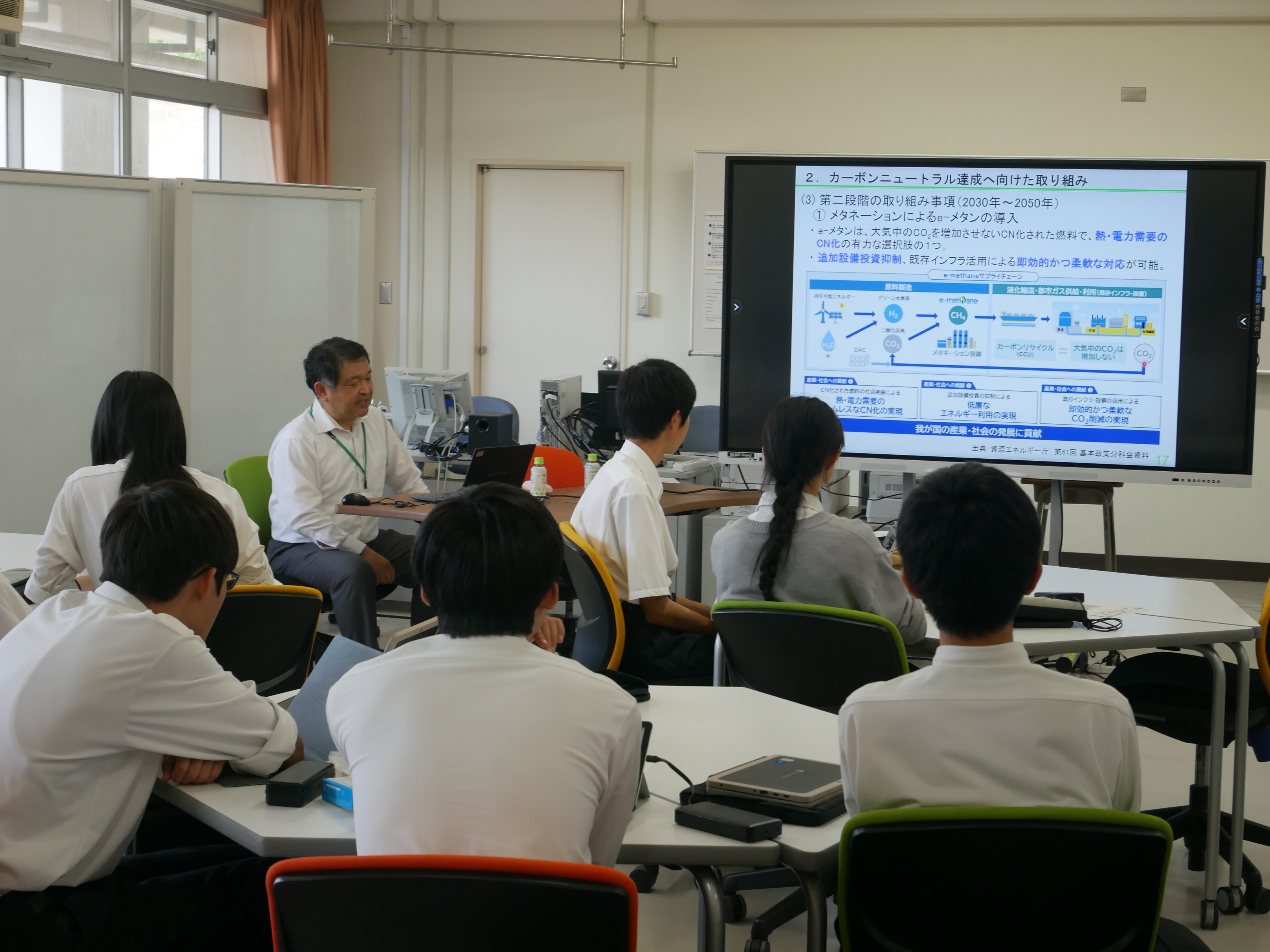 受講した生徒からは、「二酸化炭素をリサイクルする方法として、メタンに変えて燃料にできることを初めて知った」「地球温暖化に対して、まだ具体的な対策がどのくらいとられているか知らなかったので、一歩ずつでも進んでいることに驚いた」という感想が寄せられました。