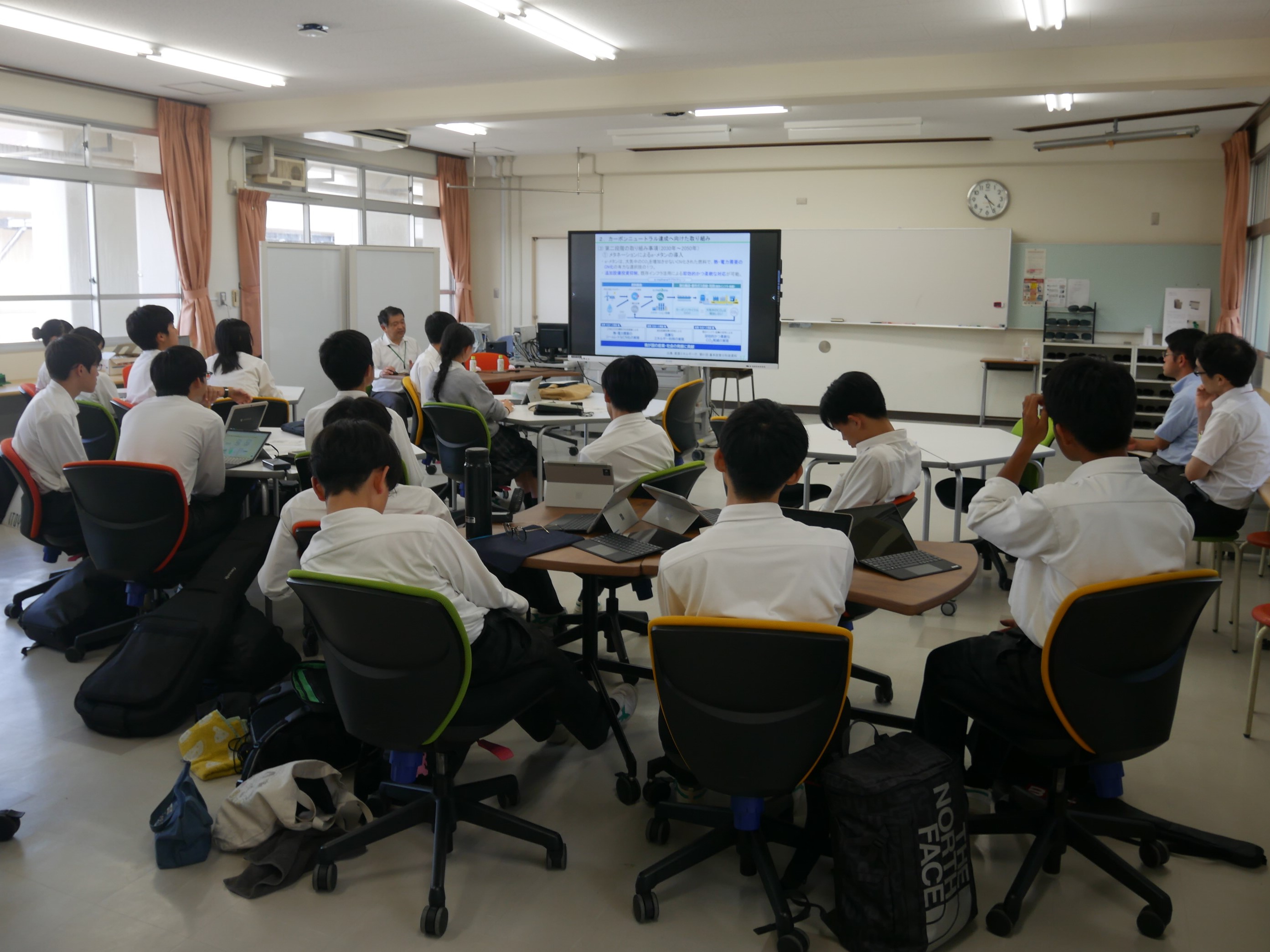 「カーボンリサイクルに関する次世代教育」のための特別授業(主催:広島県)が広島県立安古市高校で行われ、1年生〜3年生の15名が受講しました。