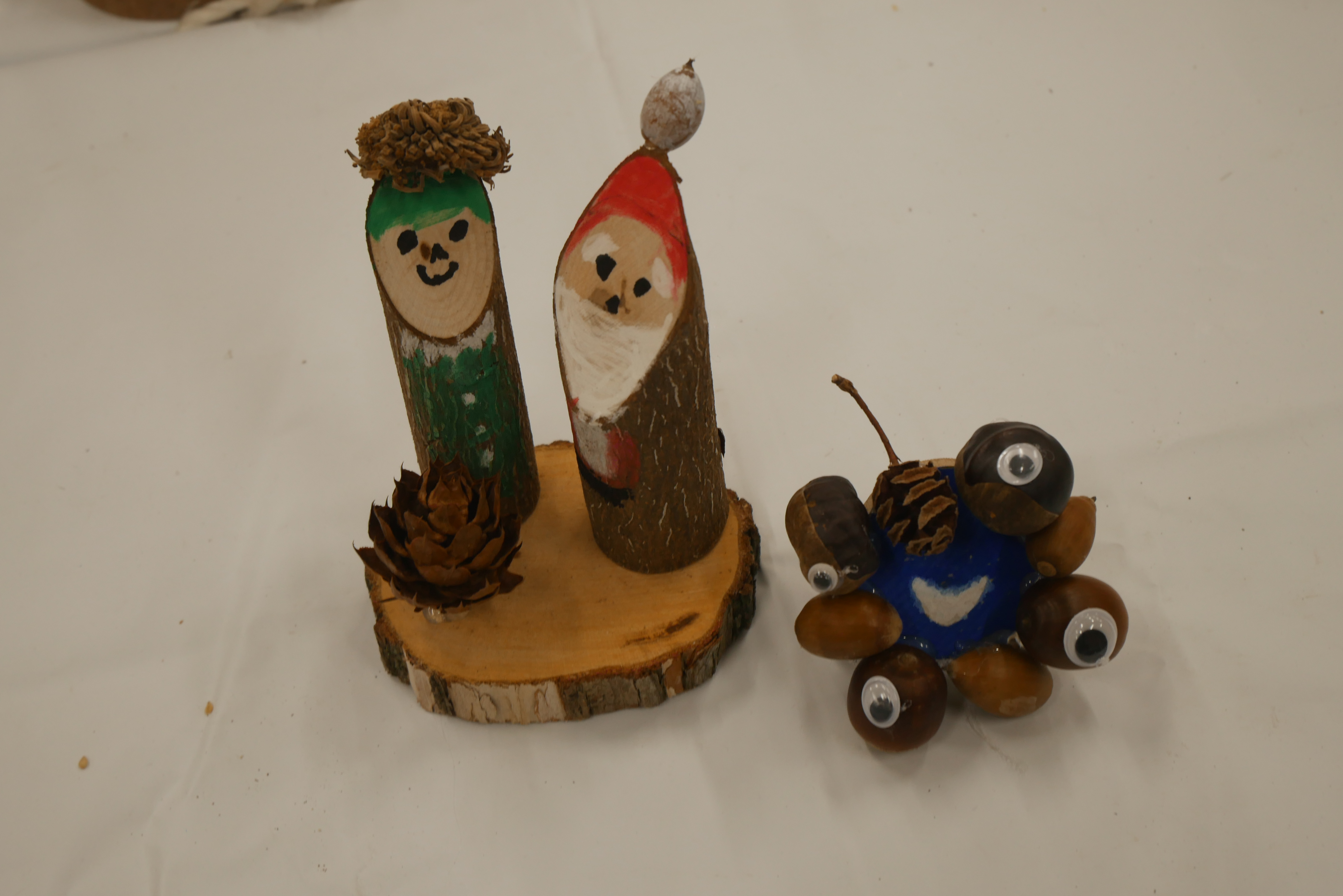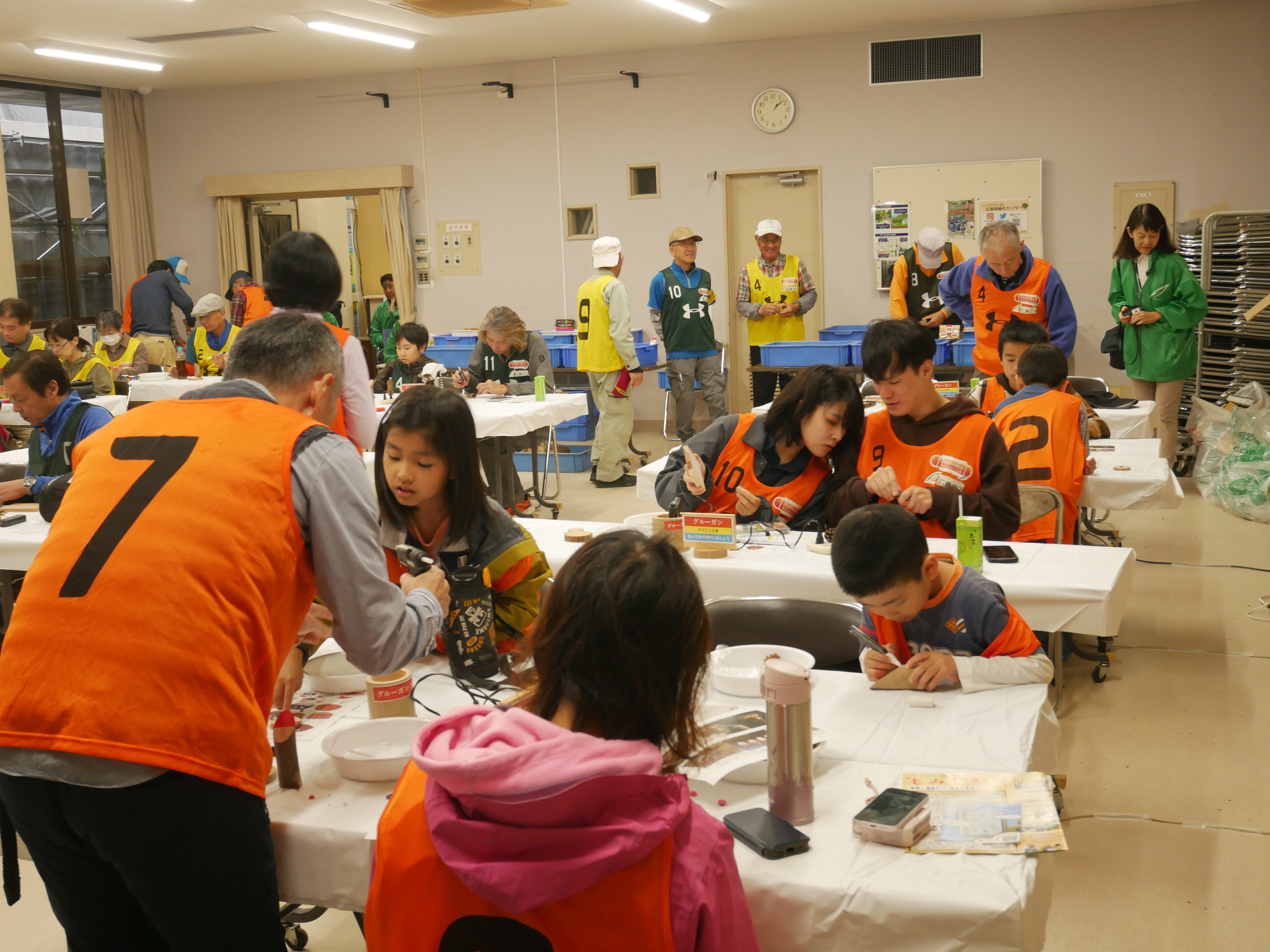 当日は秋らしく心地よい天候の中、広島県緑化センターの職員の方々の指導のもと、森林保全のための不要な枝木の伐採や、敷地内の木や木の実などを素材とした木工工作を行いました。
