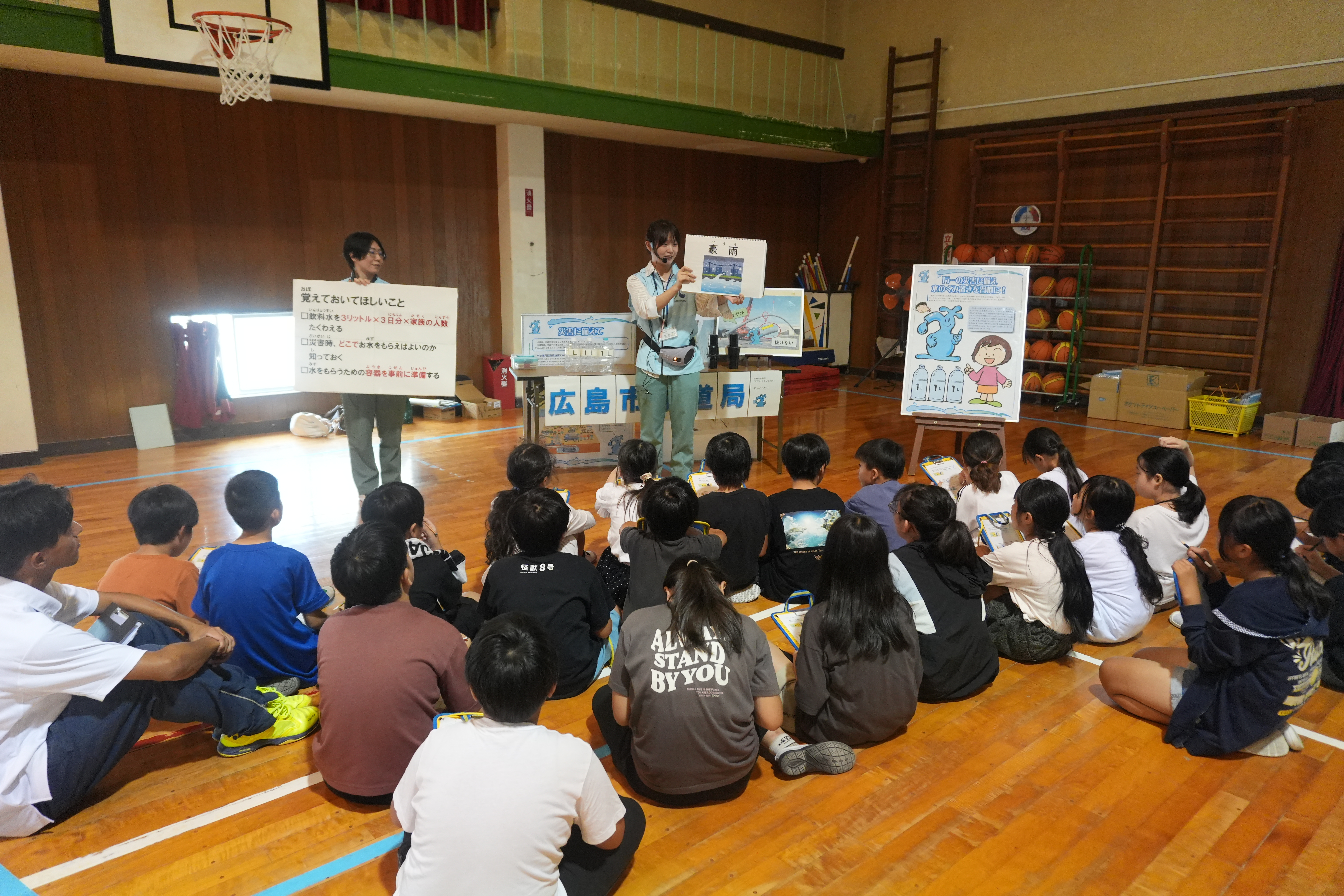 この教室は、災害時に役立つ水道・電気・通信・ガスに関する知識を学び、ご家庭での防災意識を高めることを目的として、2015年度から毎年秋ごろに小学校4年生を対象に実施しているものです。今年度は舟入小学校、府中北小学校、白島小学校、毘沙門台小学校の4校合計291名の皆さんにご参加いただきました。