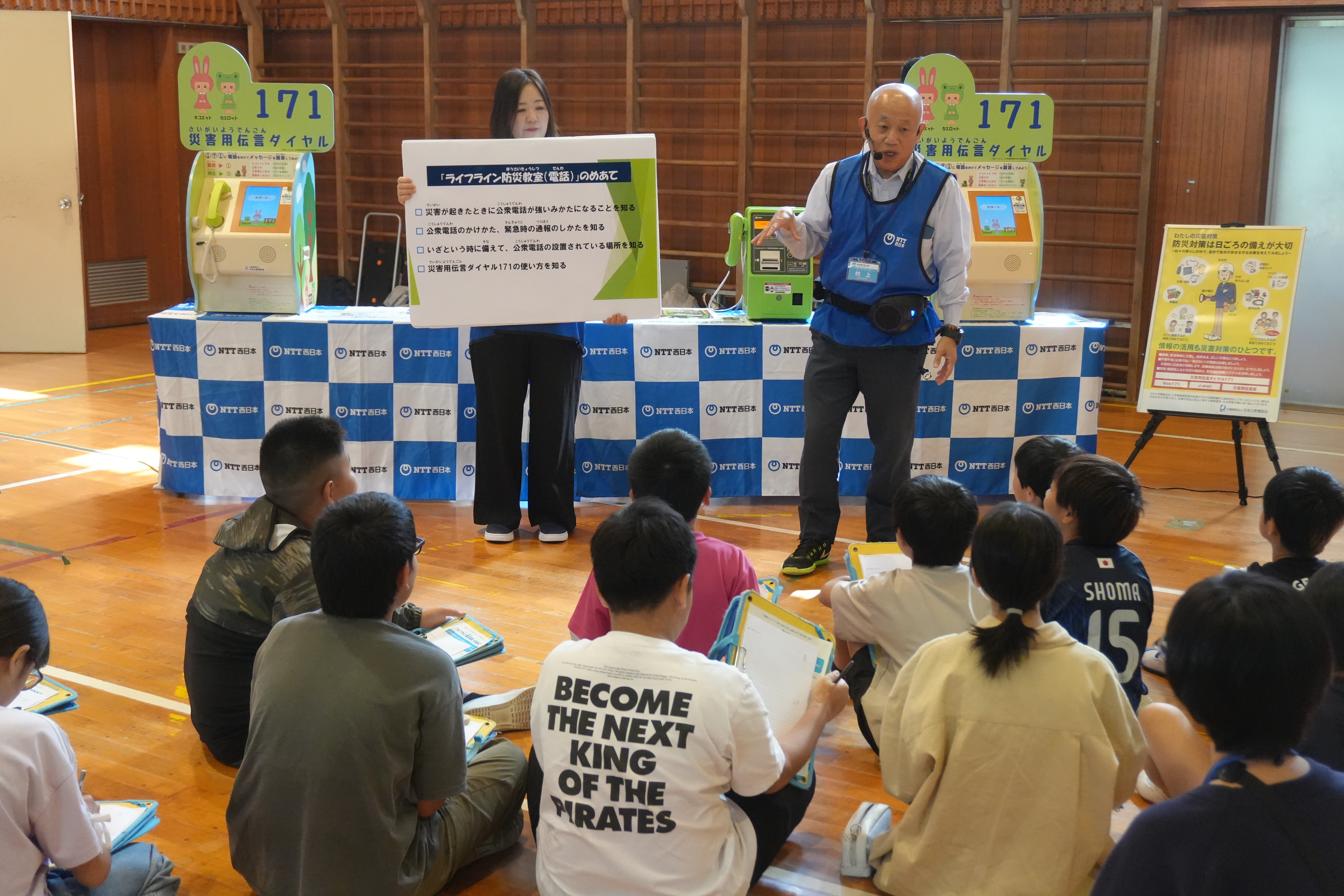 全体学習では、災害時にライフラインが止まった場合の行動やライフラインの重要性に加え、新聞や食品用ラップなどを活用した災害時に役立つ知識をご紹介し、その後、各事業者に分かれて防災に関する授業を行いました。