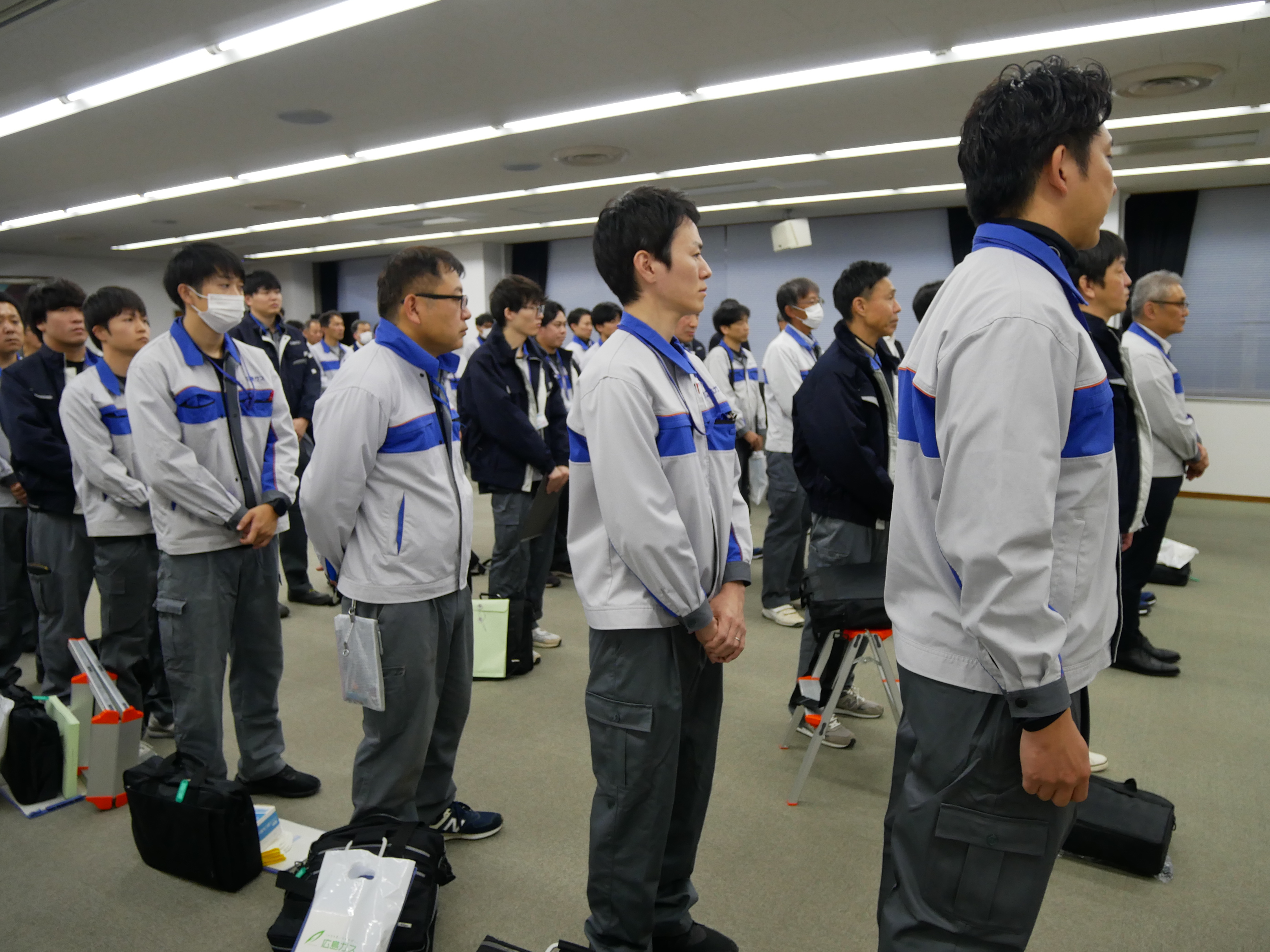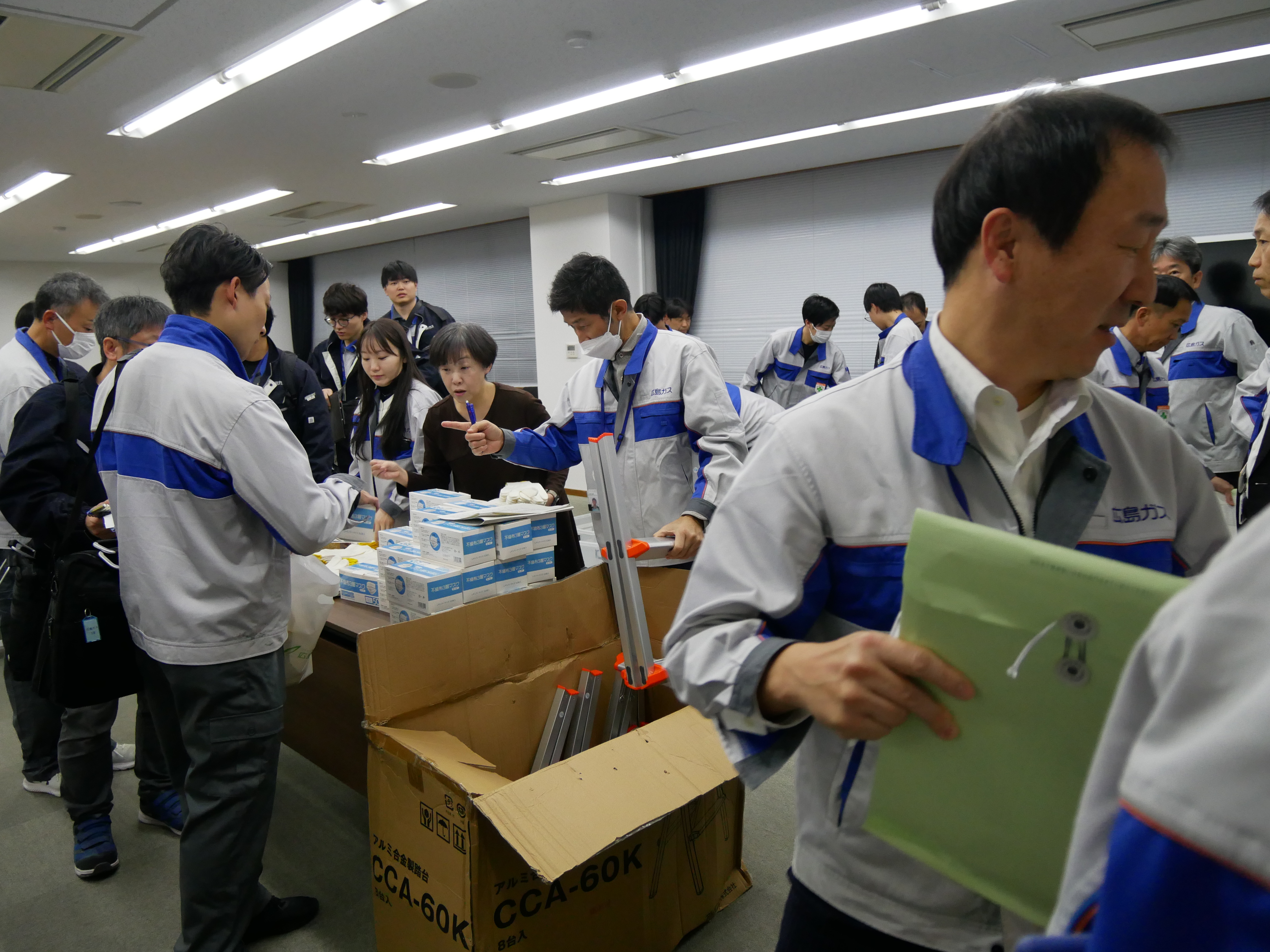日本ガス協会中国・四国部会を通じて開栓応援隊の派遣要請があり、これを受けて他社とともに当社からは、12月5日(金)に53名・車両20台が宇部市に向けて出発しました。